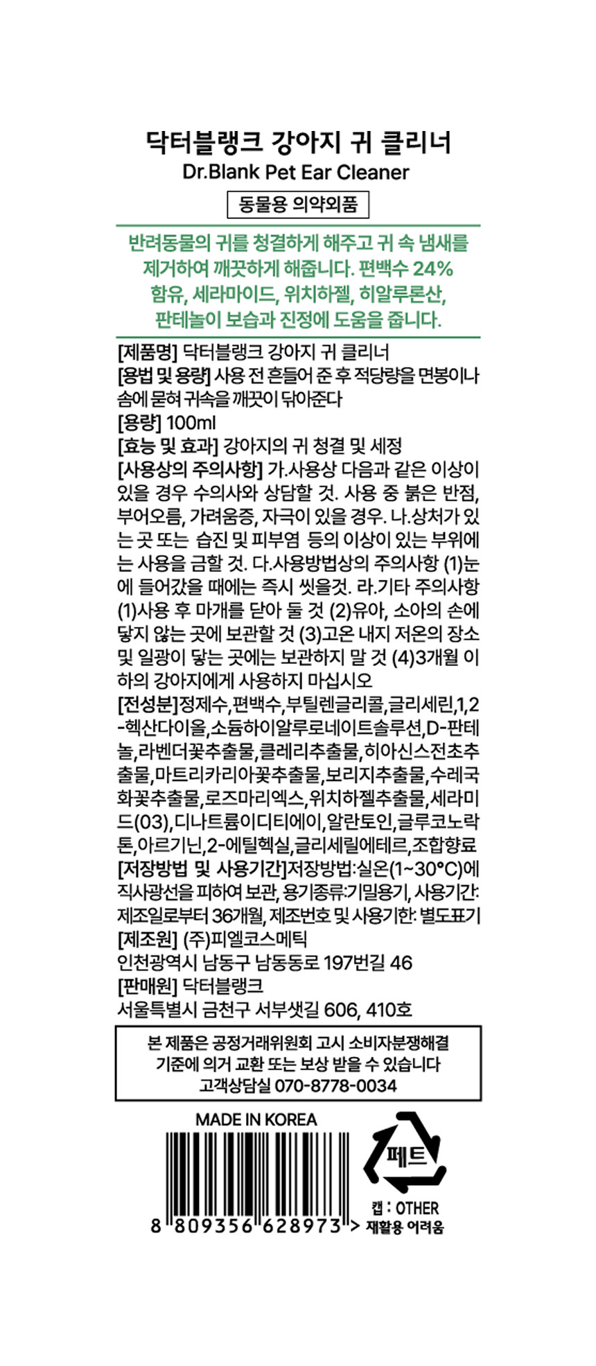 닥터블랭크 귀 클리너 100ml