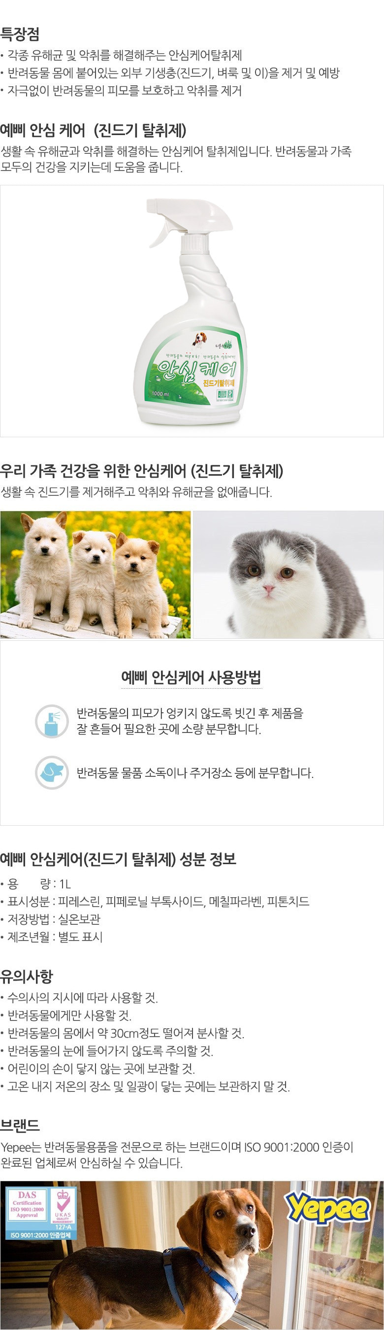 예삐 안심케어 진드기 탈취제 1L