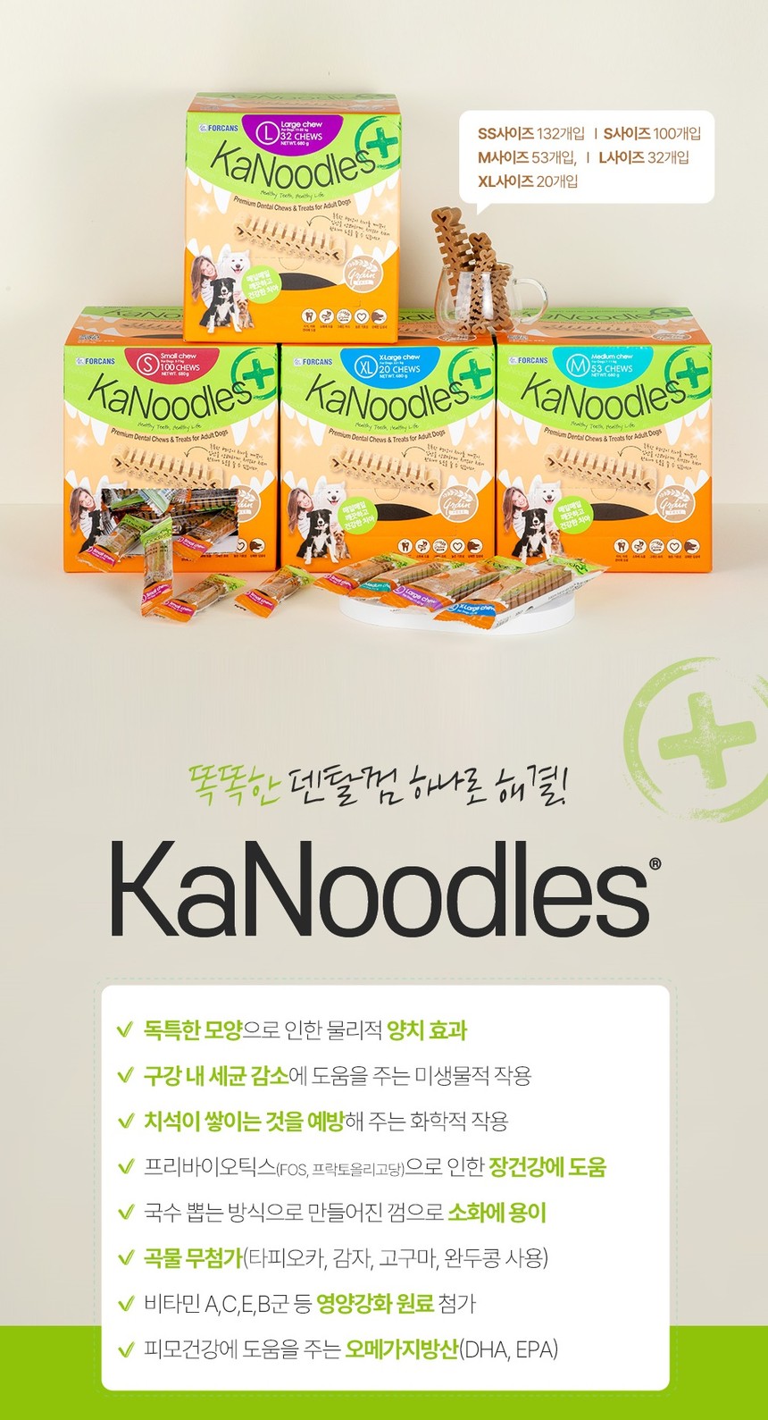 카누들 플러스 덴탈껌 필로팩 S 소형견용 100개입